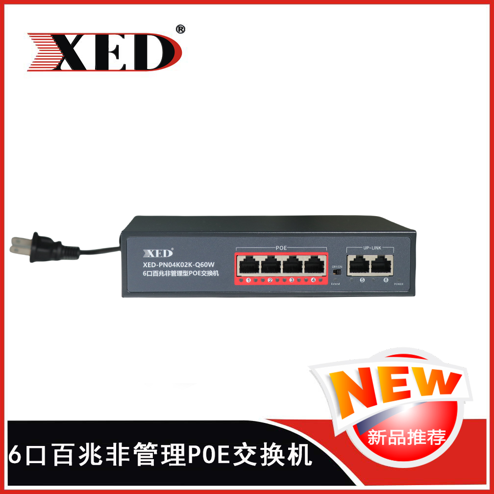 XED-PN04K02K-Q60W是一款高性能的百兆POE交換機(jī),可通過(guò)網(wǎng)線為無(wú)線AP,攝像頭等PD設(shè)備提供最大單端口30W...