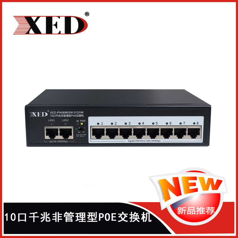 XED-PN08M02M-D125W是一款高性能的全千兆POE交換機(jī),可通過(guò)網(wǎng)線為無(wú)線AP,攝像頭等PD設(shè)備提供最大單端口...